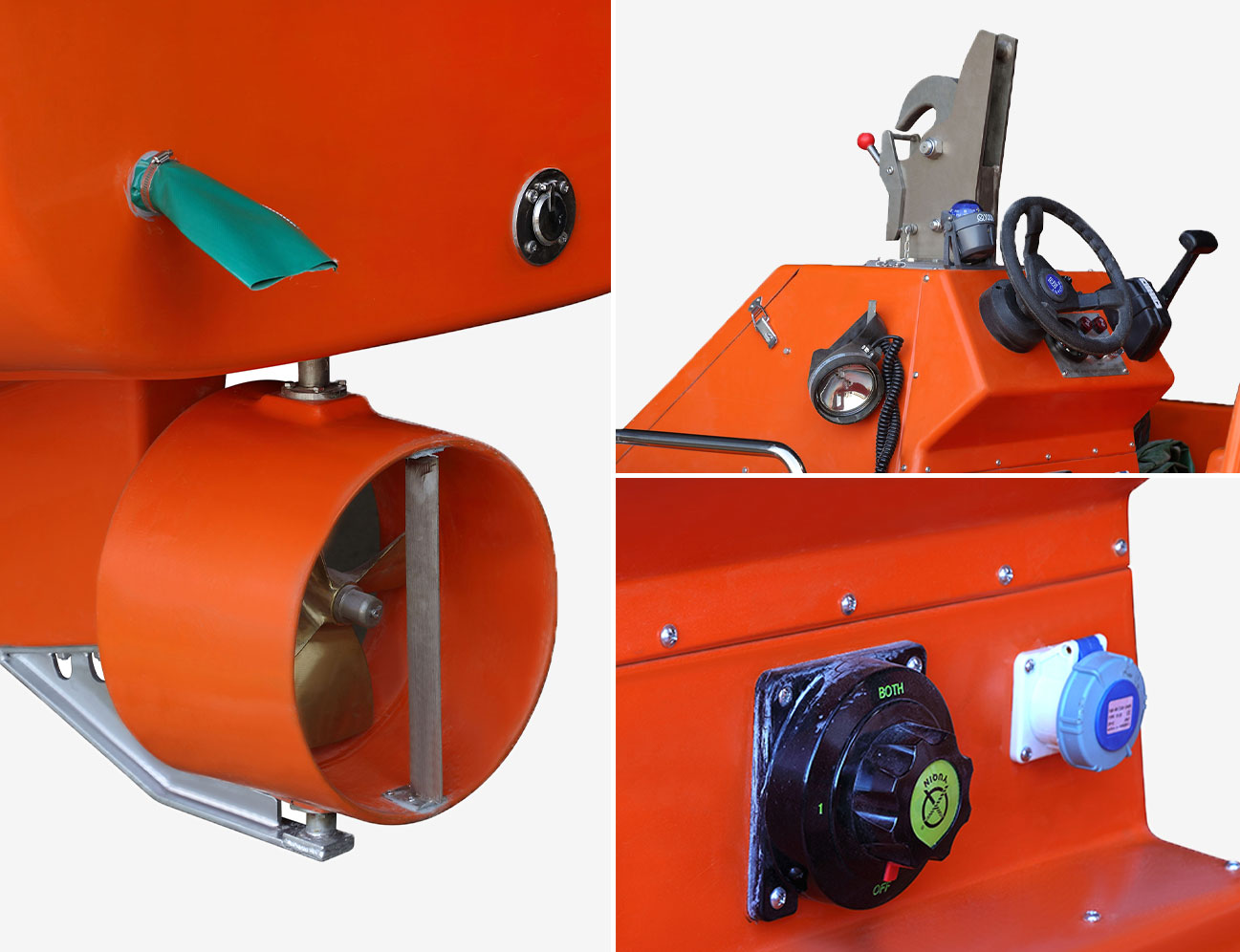 本艇的設(shè)計(jì)、制造和試驗(yàn)完全符合MSC.226(82)、MSC.274(85)、MSC.321(89)和MSC.323(89)修正的MSC.81(70)《經(jīng)修正的就生設(shè)備試驗(yàn)建議》第1部分;1974年國(guó)際海上人命安全公約及其修正案第Ⅲ章第21、31、34條;經(jīng)MSC.218(82)、MSC.272(85)、MSC.320(89)修正的MSC.48(66)《國(guó)際救生設(shè)備規(guī)則》第Ⅴ章的要求; 艇體為阻燃型玻璃鋼;供人員行走的表面均為防滑面;內(nèi)殼與外殼的聚氨酯泡沫給救助艇提供足夠的浮力。如果在水線下面的船體有損壞,浮體仍可提供足夠的浮力使艇在安全水平面上漂浮。救助艇兩側(cè)設(shè)有鋼性扶手以便乘員上下,自滔式甲板確保進(jìn)入艇內(nèi)的海水快速排放;艇上裝有手搖泵,用于排除艇內(nèi)積水;艇上裝有不銹鋼吊鉤系統(tǒng),采用吊艇索下放或回收;救助艇配備自扶正空氣箱,滿足客貨滾裝輪的使用要求;本艇可滿載全速航行大于4小時(shí),航速可達(dá)到6節(jié)以上。