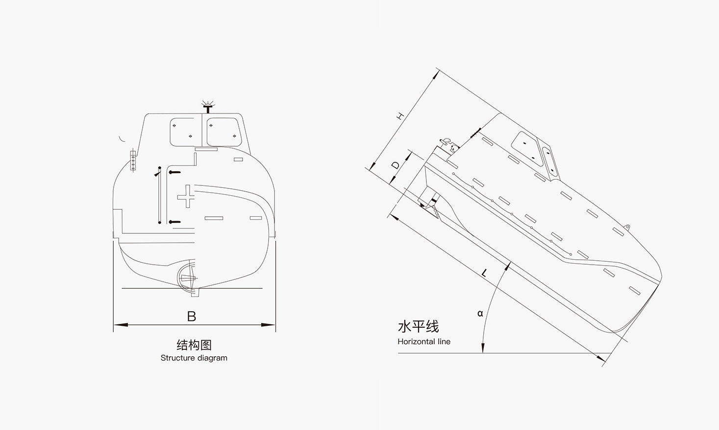 本艇的設(shè)計(jì)、制造和試驗(yàn)完全符合經(jīng)MSC.226(82)、MSC.274(85)和MSC.323(89)修正的MSC.81(70)《經(jīng)修正的就生設(shè)備試驗(yàn)建議》第1部分;1974年國(guó)際海上人命安全公約及其修正案第Ⅲ章第21、31、34條;經(jīng)MSC.218(82)、MSC.272(85)修正的MSC.48(66)《國(guó)際救生設(shè)備規(guī)則》第Ⅳ章的要求;具備救生、救助兼用功能,適合在較惡劣海況下使用,如遠(yuǎn)洋客貨輪及油輪等,同時(shí)也適用于石油鉆井平臺(tái)、軍艦平臺(tái)等。 艇體為具有高耐燃特性的阻燃型玻璃鋼;供人員行走的表面均為防滑面;艇內(nèi)裝有可排除艇內(nèi)積水手搖泵;本艇通過滑道自由降落下放,并采用吊艇索回收,自由釋放系統(tǒng)裝置是經(jīng)過特殊設(shè)計(jì)的,操作方便、安全可靠;本艇可滿載全速航行大于24小時(shí),航速可達(dá)到6節(jié)。 本艇有普通型和耐火型兩種規(guī)格,其中耐火型救生艇裝有灑水系統(tǒng),由主機(jī)水泵帶動(dòng)從艇最低處抽取海水,確保沒有易燃液體進(jìn)入系統(tǒng),灑水系統(tǒng)能提供足夠的水,噴灑于艇的表面;耐火型救生艇裝有供氣系統(tǒng),可提供足夠的的空氣滿足全體乘員和柴油機(jī)全速運(yùn)轉(zhuǎn)至少8分鐘,能在艇內(nèi)形成一個(gè)超壓狀態(tài)以阻止有毒有害氣體的進(jìn)入。